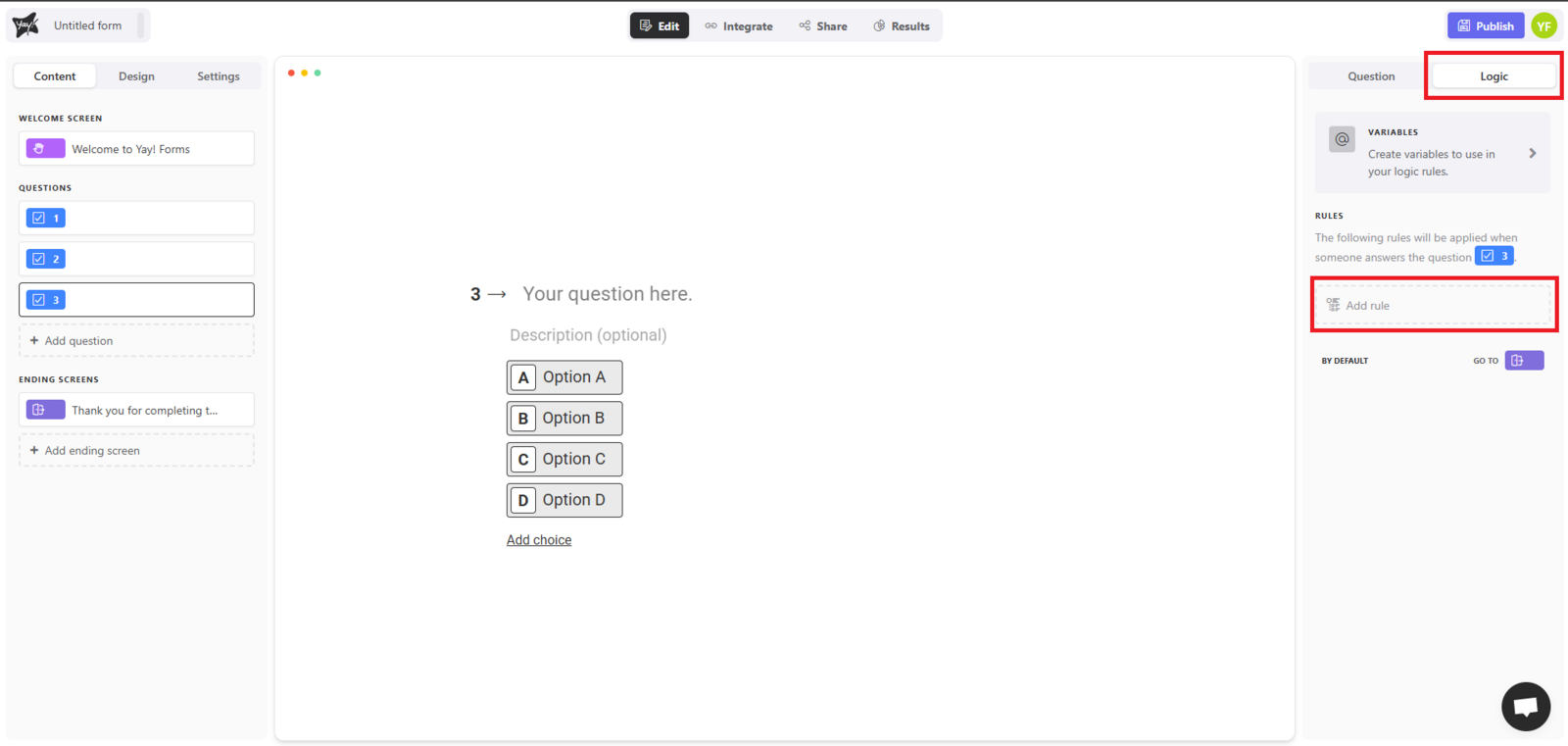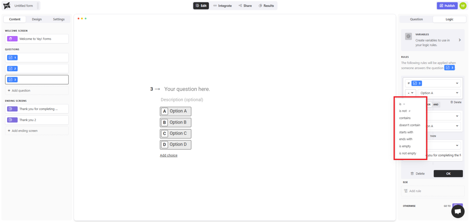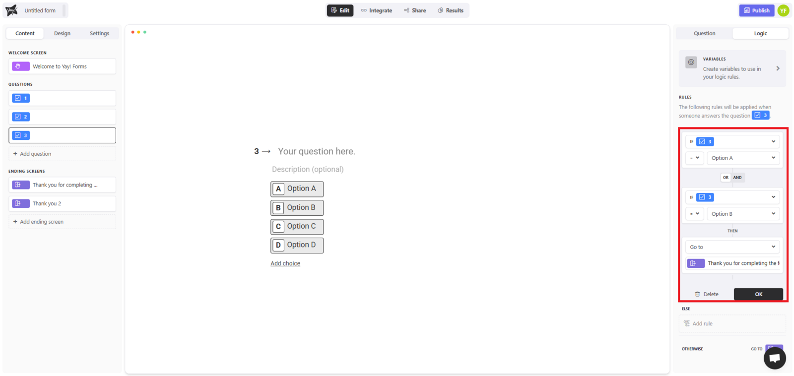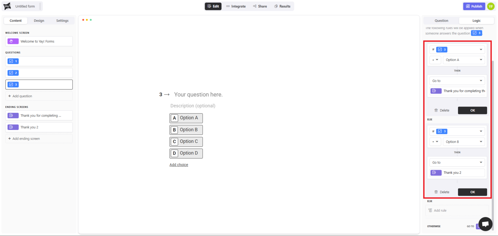 Logic in Yay! Forms allows you to create dynamic, intelligent forms that adapt based on the user’s answers.