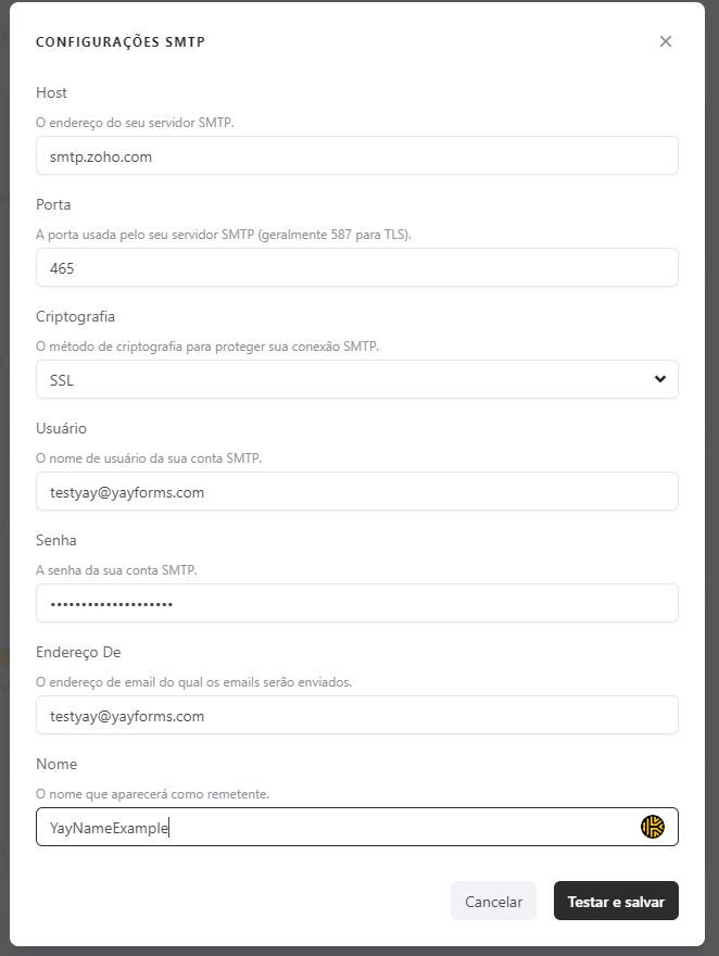 - Your SMTP server address;