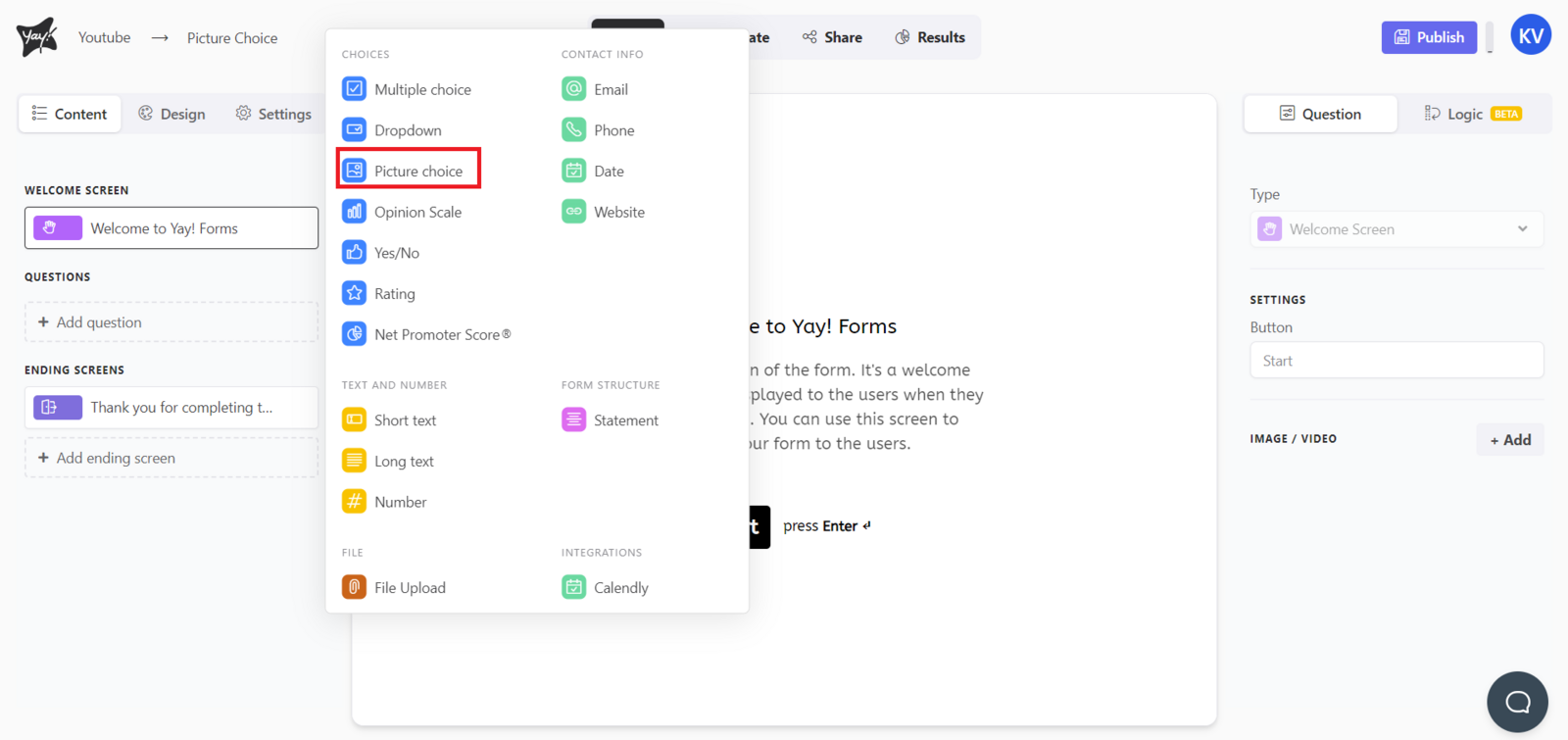 First, choose the 'Image choice' type.