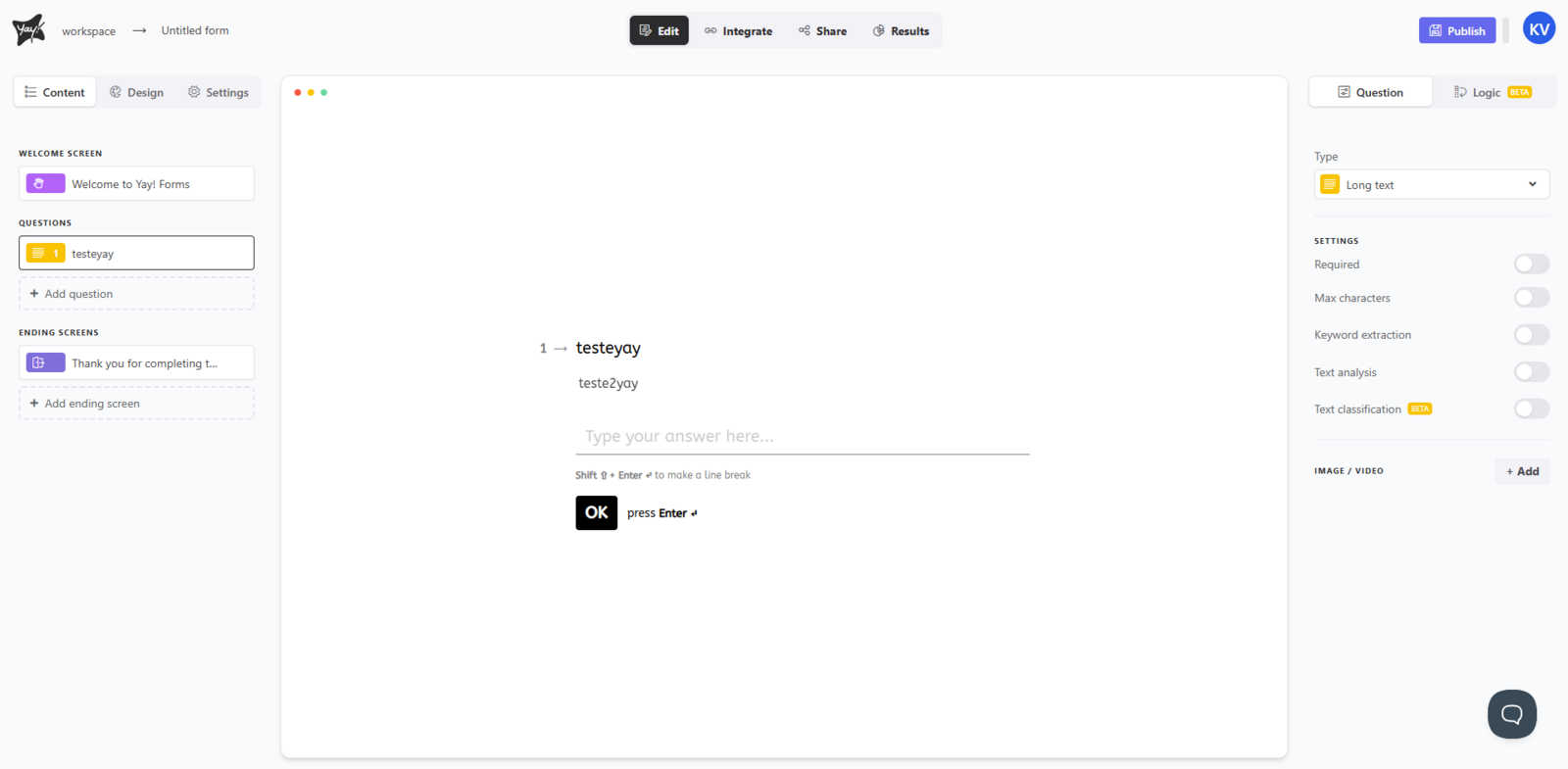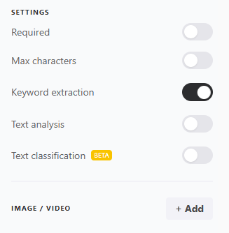 In this article, you will learn how to use the Long text question type to collect short written responses, edit the question’s title and description, and configure key options such as keyword extraction, text analysis, and automatic response classification.
