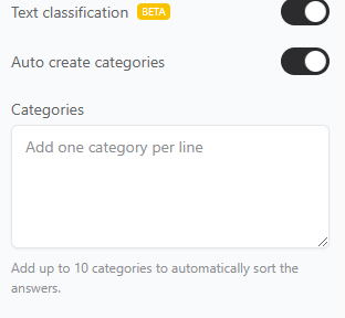 Finally, you can enable the automatic response classification option, where you define categories to organize responses. In addition, if you prefer, you can enable the automatic category updates option. This way, as users respond to the form, new categories will be created automatically based on the responses received.