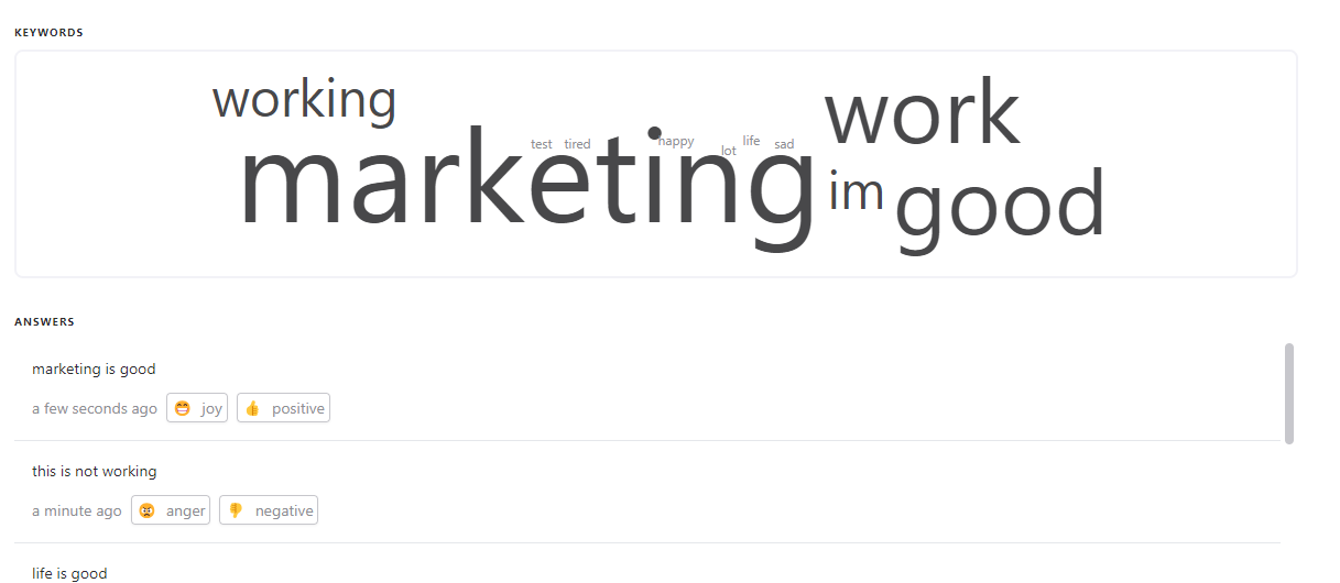 You have a few key settings in your long text field, such as keyword extraction, which extracts words and creates a word cloud from them. You can also filter responses by certain keywords identified by our platform.