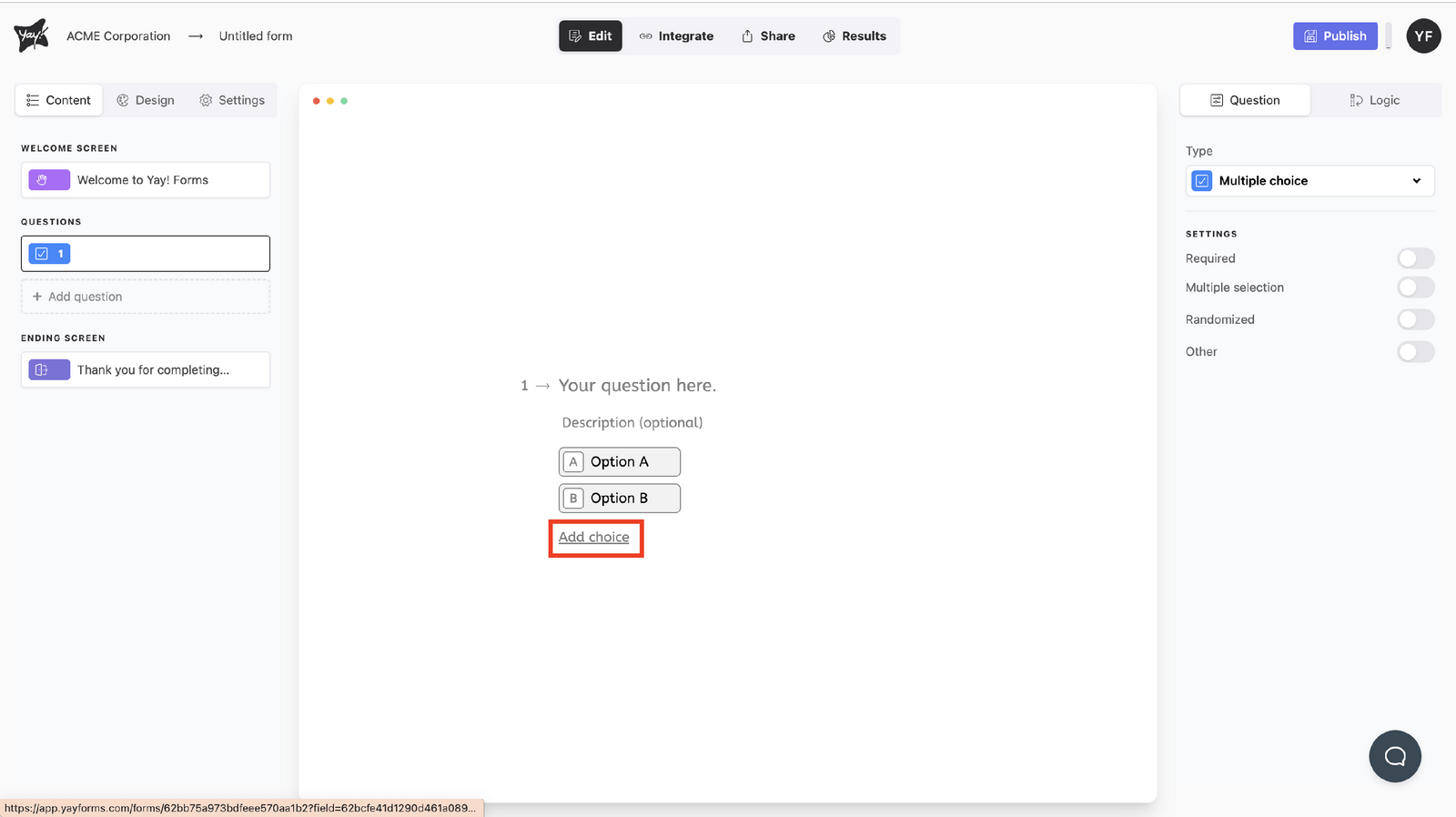 Add choices by clicking the Add choice button at the bottom of the screen.