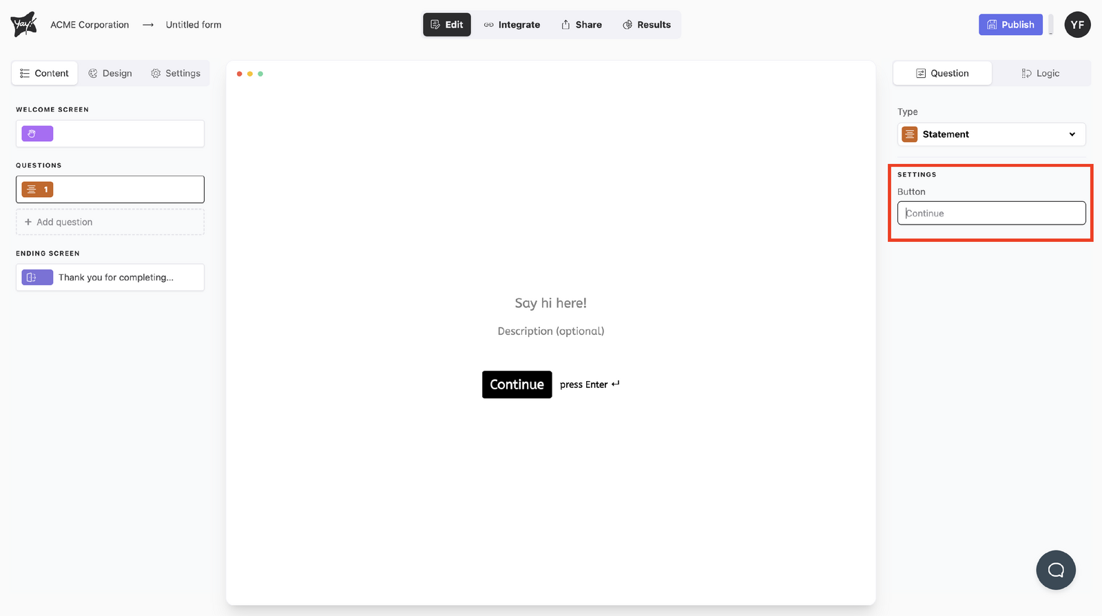 You learned how to add a Statement question to a form and adjust its displayed text, including the title, an optional description, and the button label.