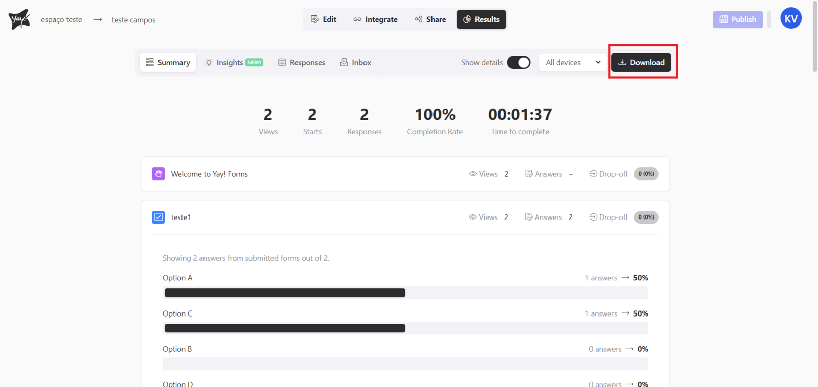 This article will help you download a summary of results from a form and understand what information is included in that download.
