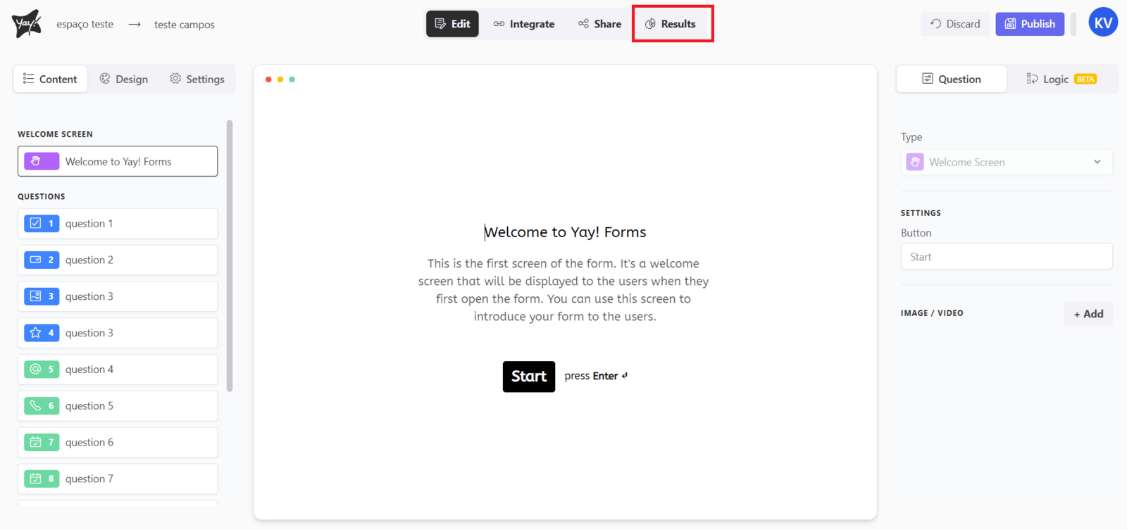 First, you should access the form you want and click the Results tab.