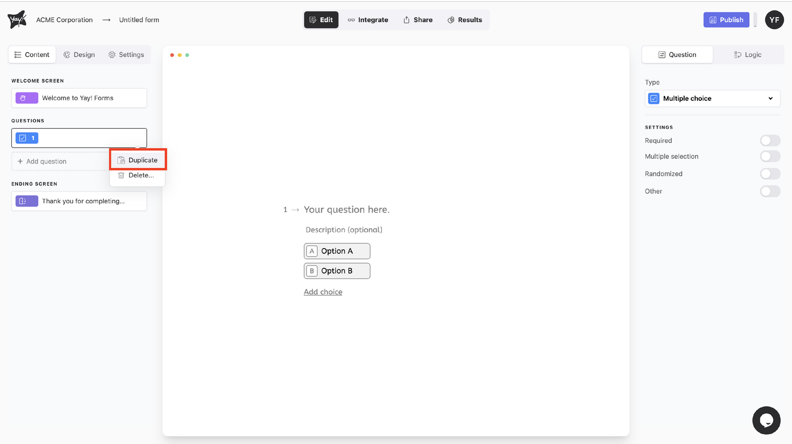 This article will help you duplicate an existing question by using the options menu on the question card.