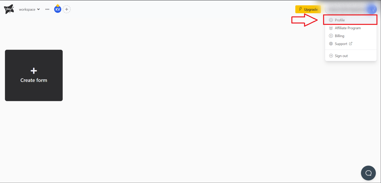 First, go to your workspace home screen. In the upper-right corner, there will be a button identified by your username. Click that button and select the Profile option.