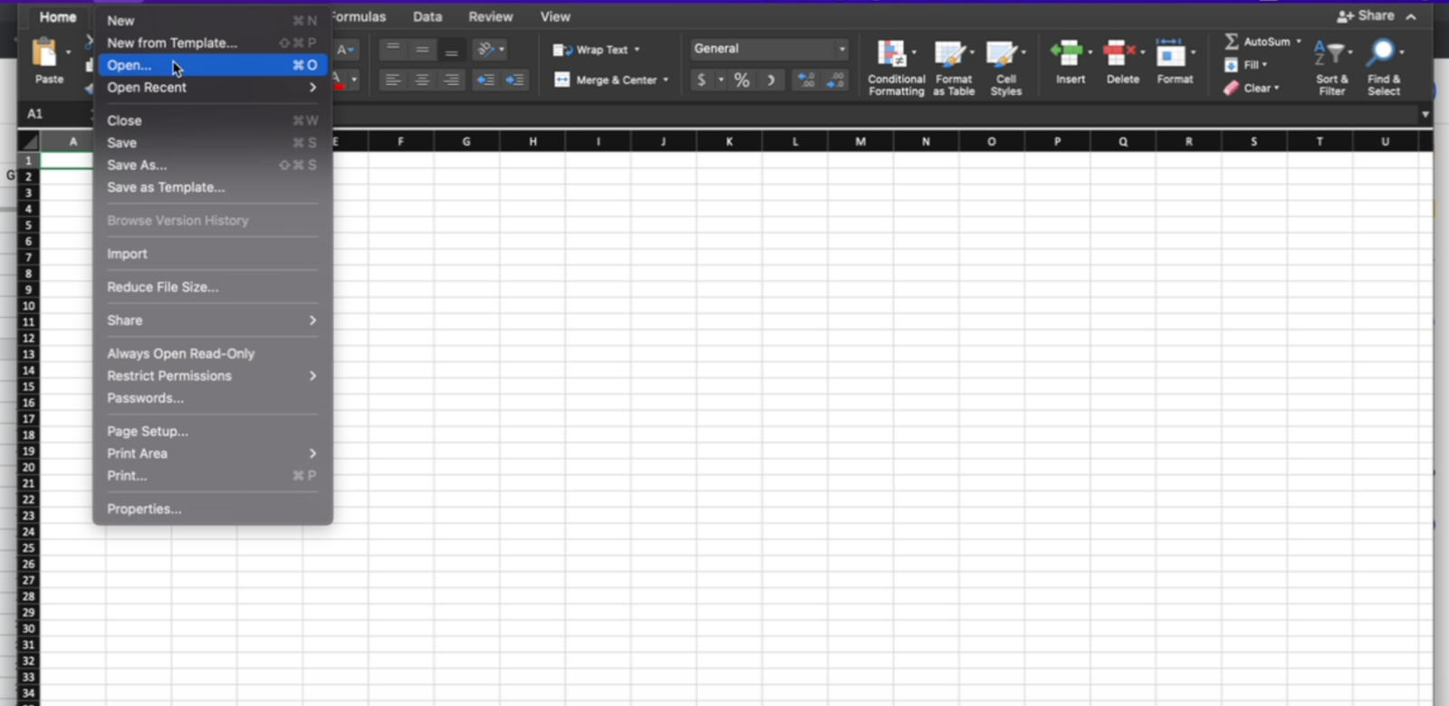 If you want to import your responses into Excel, go to the desired spreadsheet, click 'Open', and choose the file you downloaded earlier.