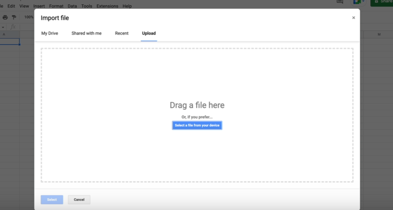 After that, click 'import data' and your upload to Google Sheets is complete.