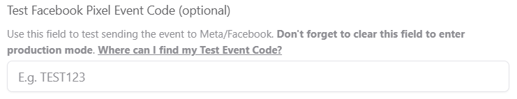 To do this, go to your Pixel integration inside Yay! Forms and clear the Facebook Pixel test field, as shown below: