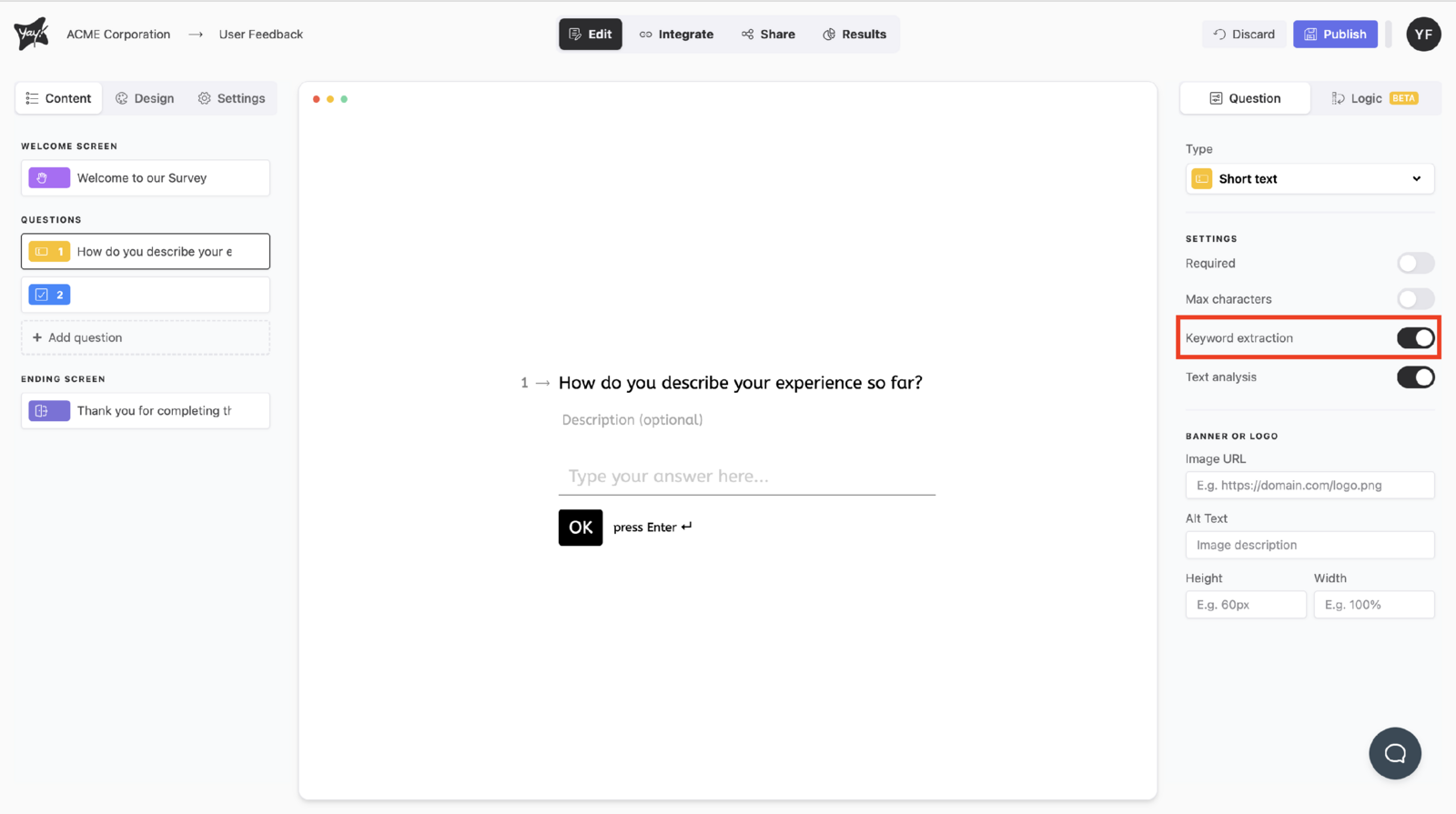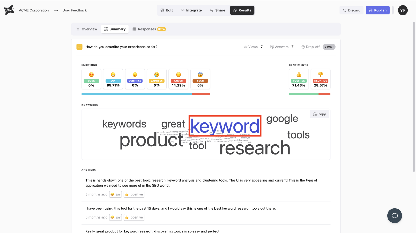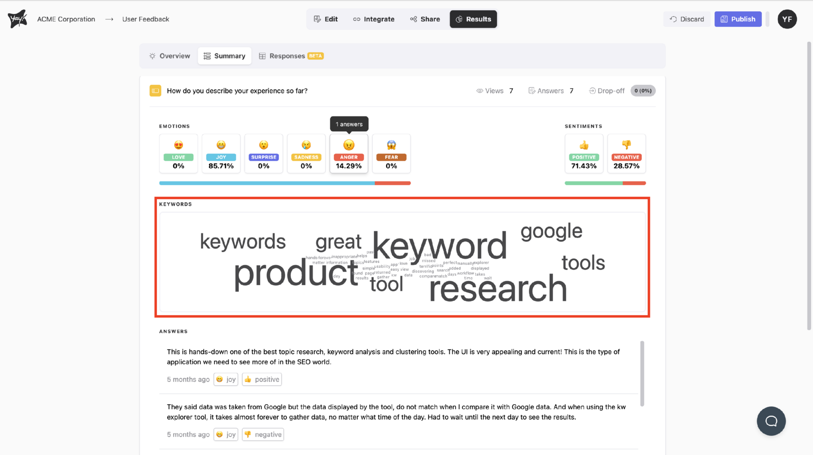Keyword extraction lets you see which words are most frequently used in your form responses.
