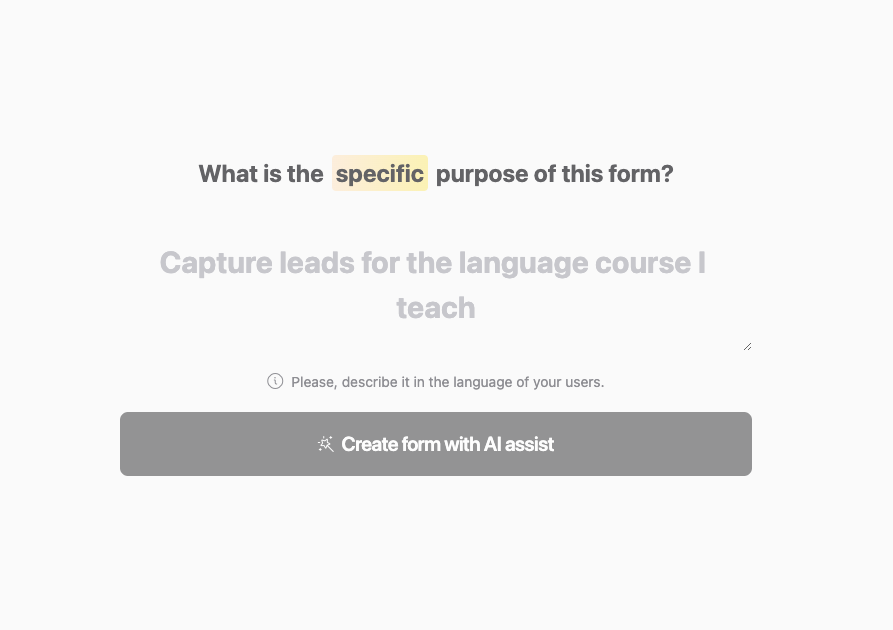 This article will help you create a form or quiz in Yay! Forms using AI assistance, from starting in your account to customizing the design and publishing the final result.