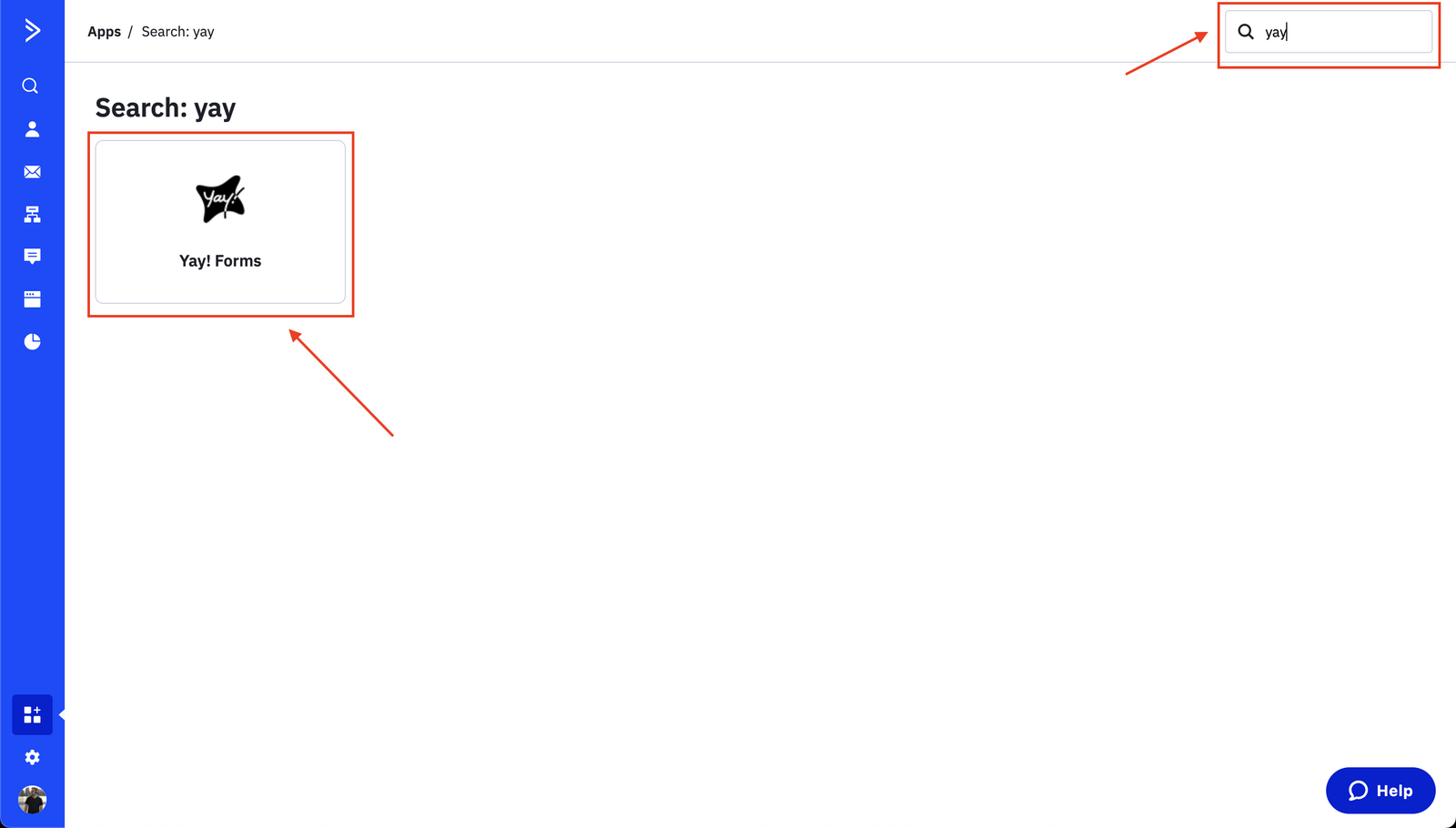 Search for "Yay" in ActiveCampaign's native app search and select Yay! Forms: