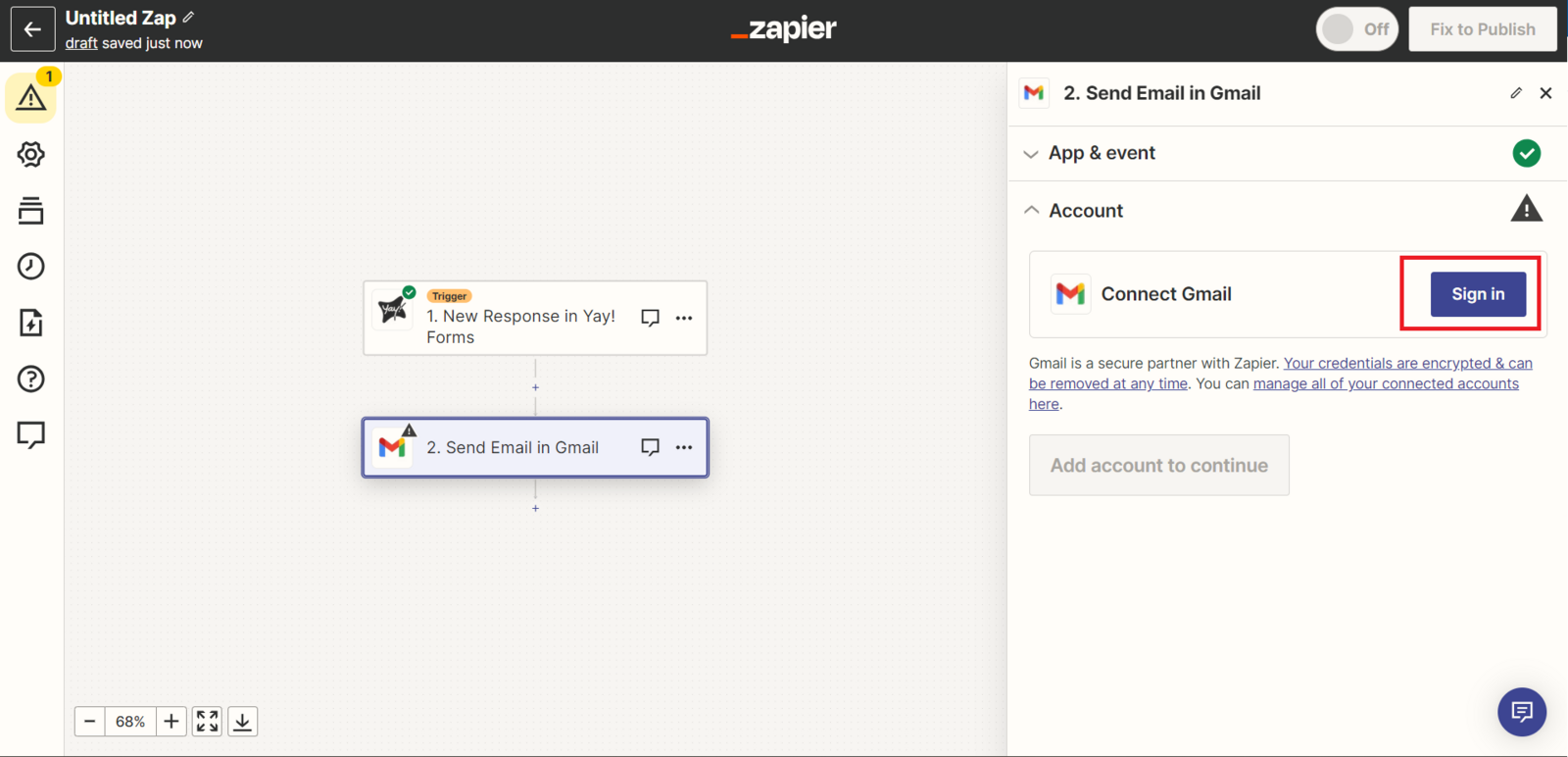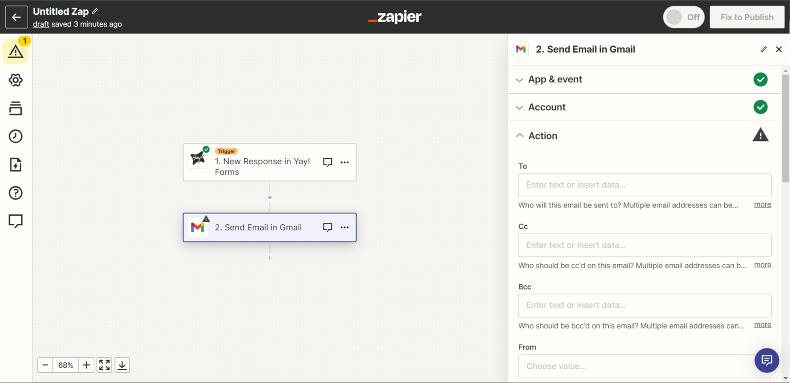 This article will help you integrate Yay! Forms with Gmail using Zapier, so you can connect your form submissions to Gmail as part of your automation flow.