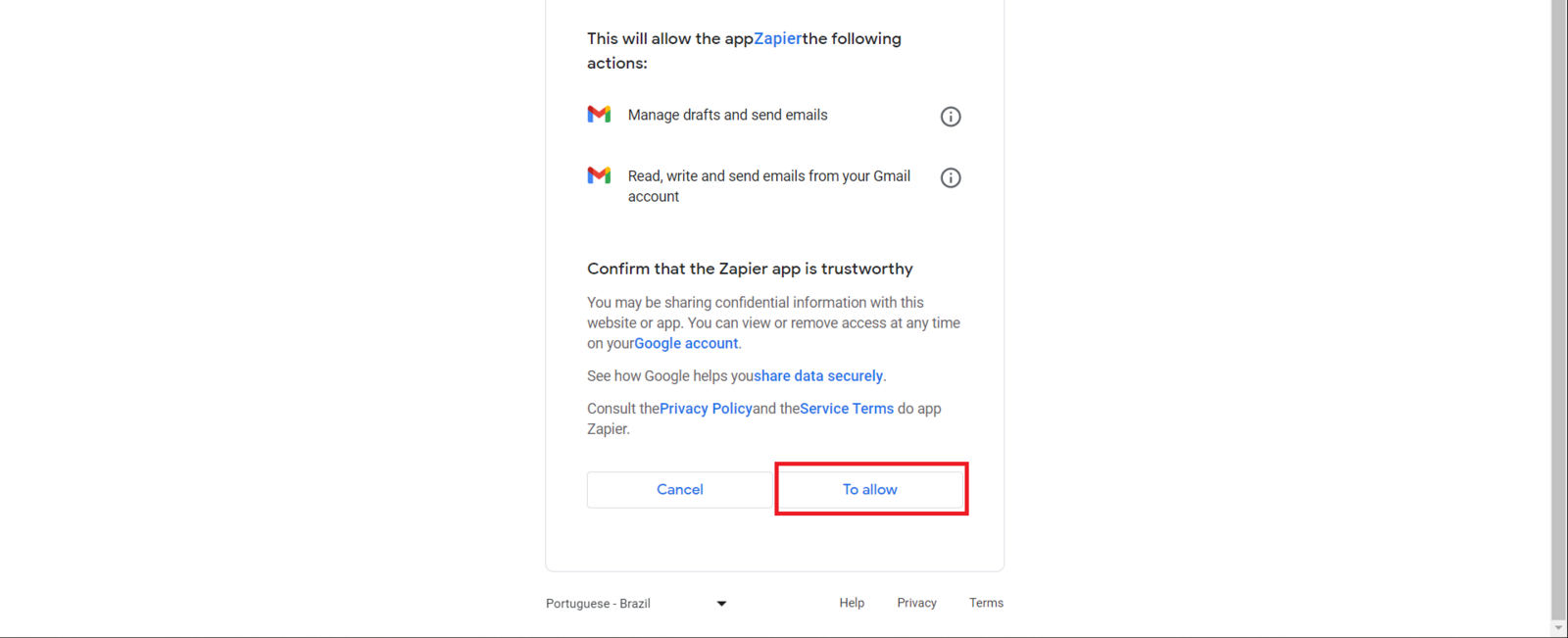 Right after you click it, a window will appear for you to connect your Gmail account. Just connect it and click Allow.
