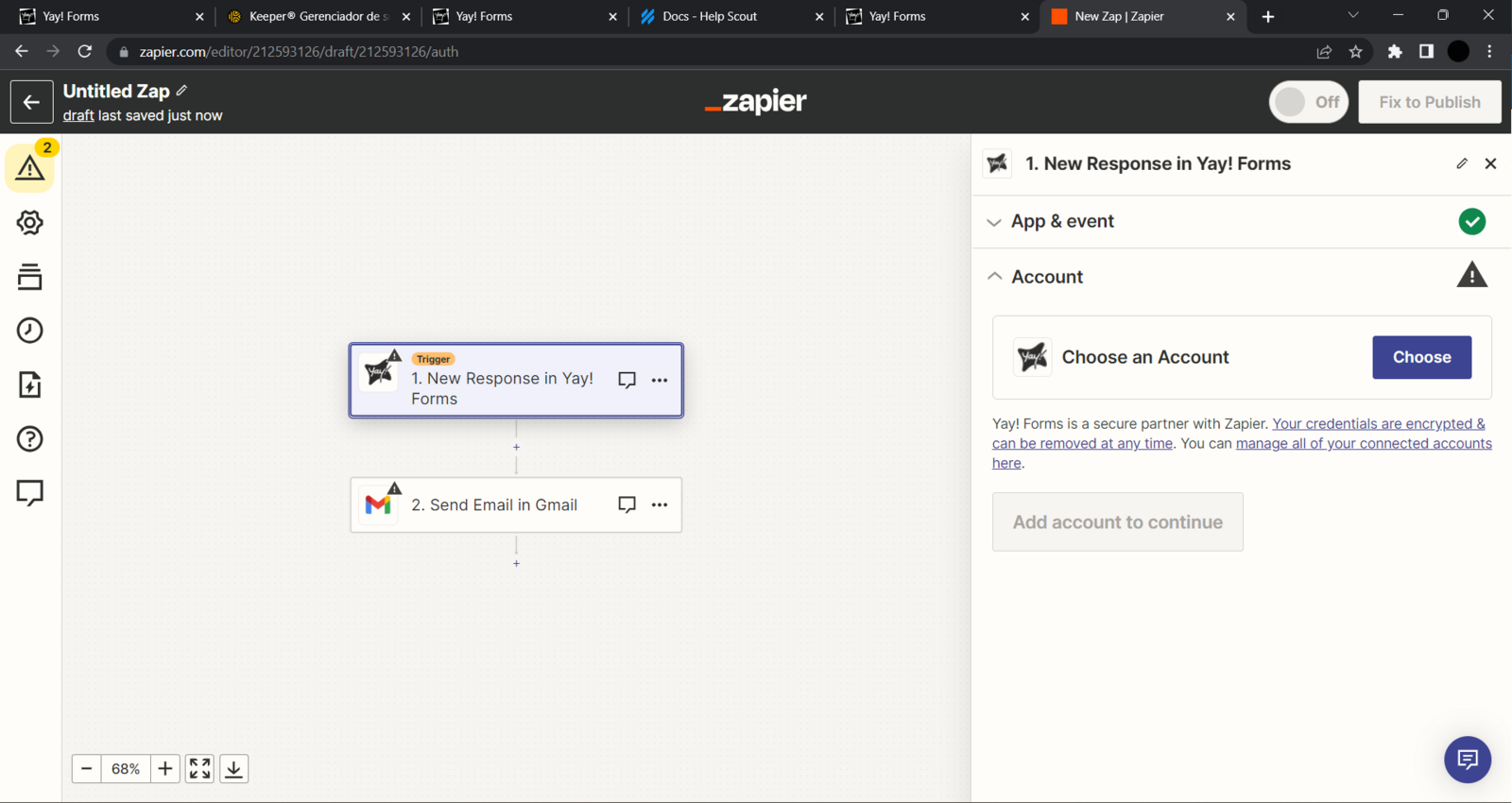 Now you need to set up your Yay! Forms account in Zapier. To do that, follow this tutorial by clicking nesse link.