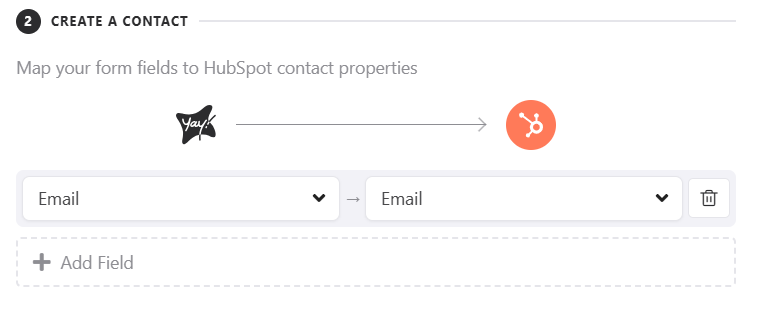 This article will help you connect your Yay! Forms form to HubSpot, understand how to configure the integration, and map form fields to create contacts, deals, and companies in HubSpot, including optional conditional sending and sending previous responses.