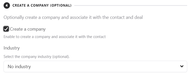 You can also map the fields in your form to the fields in your Company created in HubSpot. To do this, you first need to select which industry the company is in (if you leave it blank, it will have no industry).