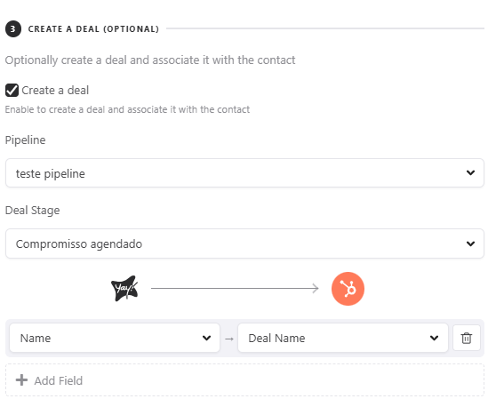 You can also map the fields in your form to the fields in your HubSpot deal. To do this, you first need to select a pipeline and the stage the deal will be in.