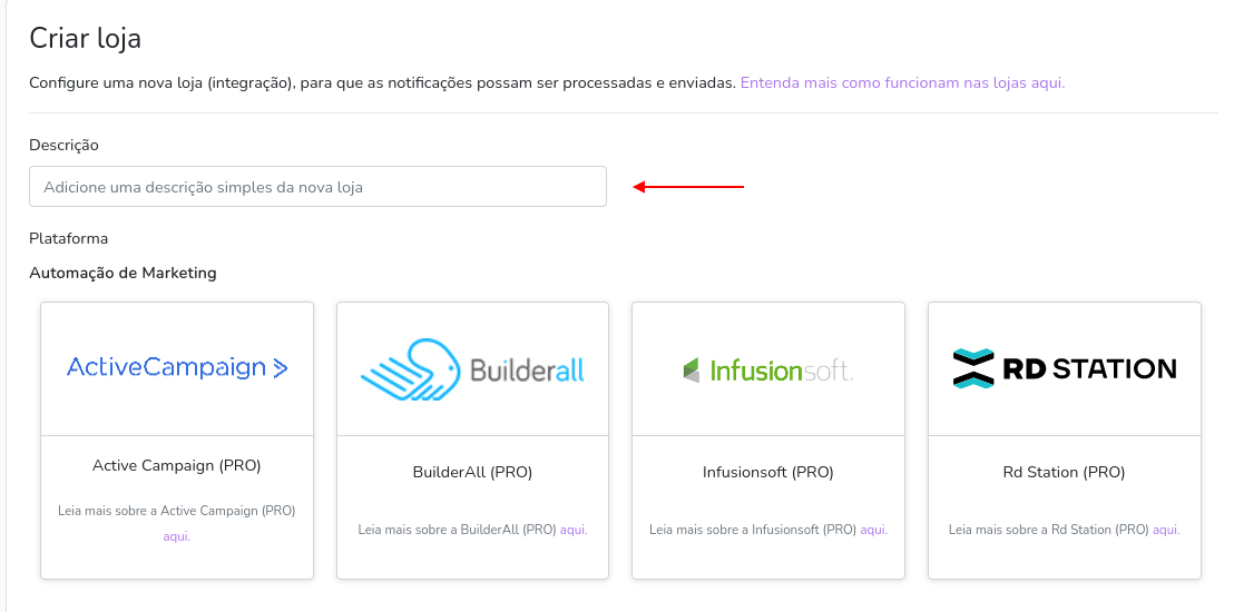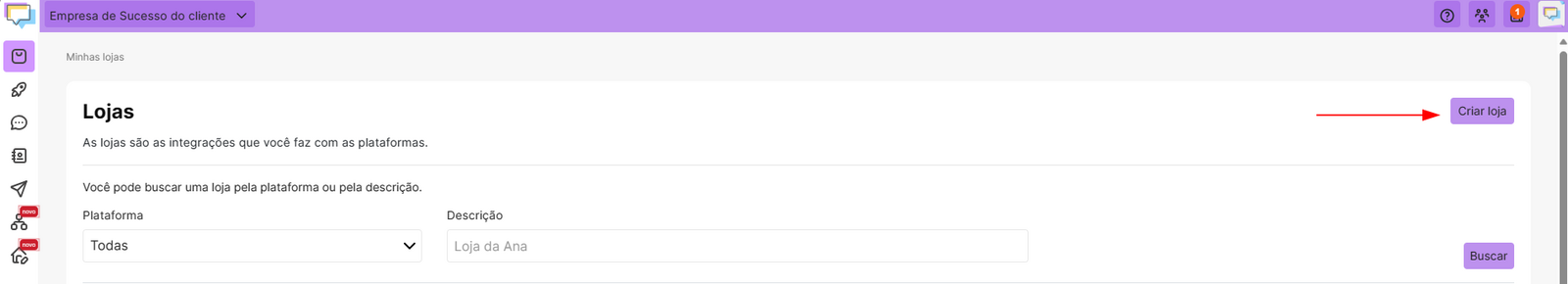 First, access your Notificações Inteligentes account and click Stores: