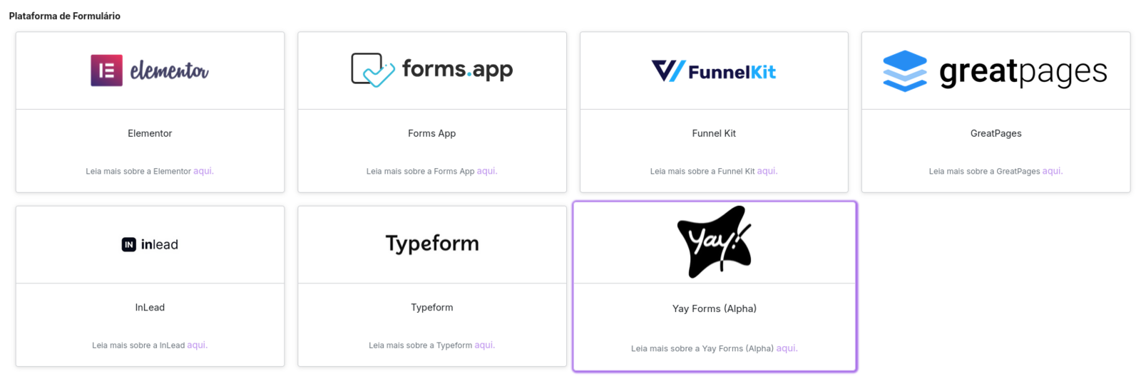 In the Platform option, select Yay Forms, within the Form platform category.