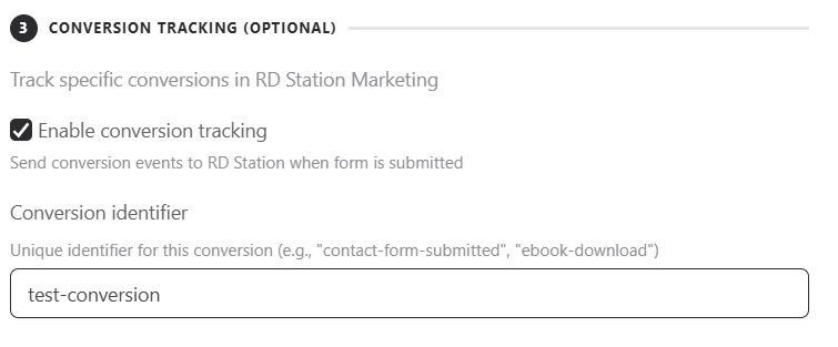 You can send conversions to Rd Station CRM linked to the created contact. Just enable this option and enter, in the corresponding field, the name of the conversion you want to send.