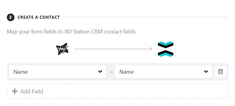 Now you can map your form fields to your contact fields in Rd Station CRM, so the contact will be created with the answers from the mapped fields.