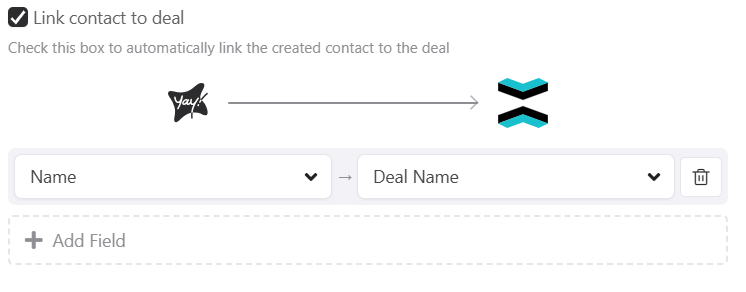After that, you can map your deal fields. Keep in mind that if you want to link the contact to the deal, it’s possible—just enable this option as shown below: