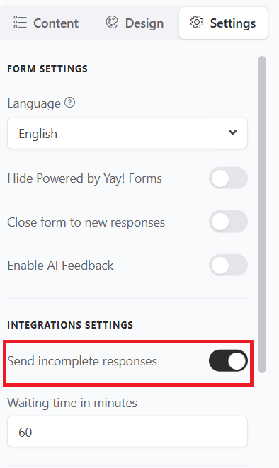 If you want an event to be triggered even if the user does not complete the form (as long as the condition configured earlier is true), enable the Send incomplete responses option.
