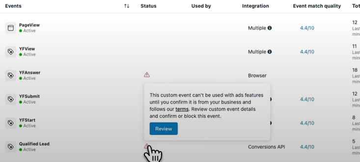 It is important to remove this test event after verification; otherwise, Facebook may interpret that the information coming from this configuration is only for testing and disregard it.