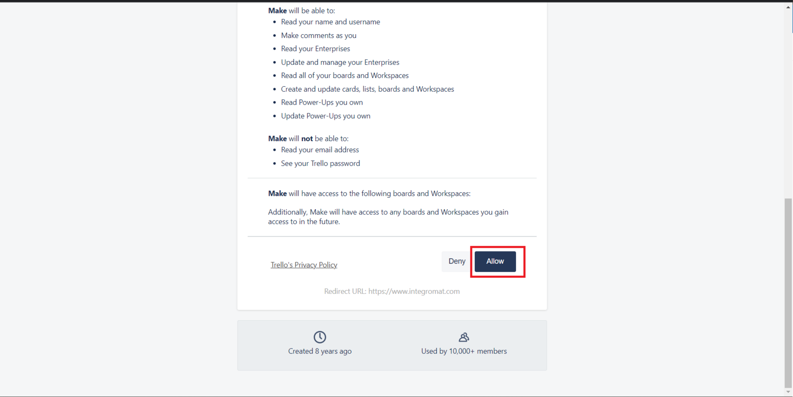 Then, right after that, you should click Create a connection, which will make a window appear to connect your Trello account. Just connect and click Allow.