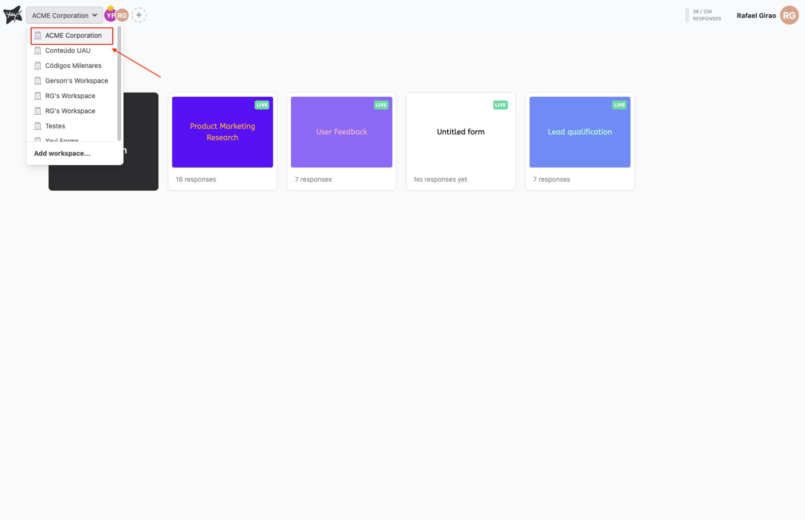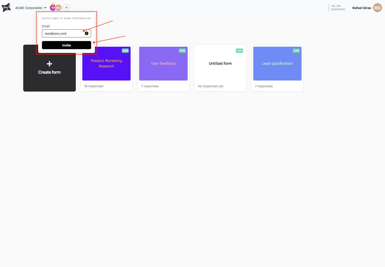 ☝️ The user must have at least one free Yay! Forms account in order to join the workspace.