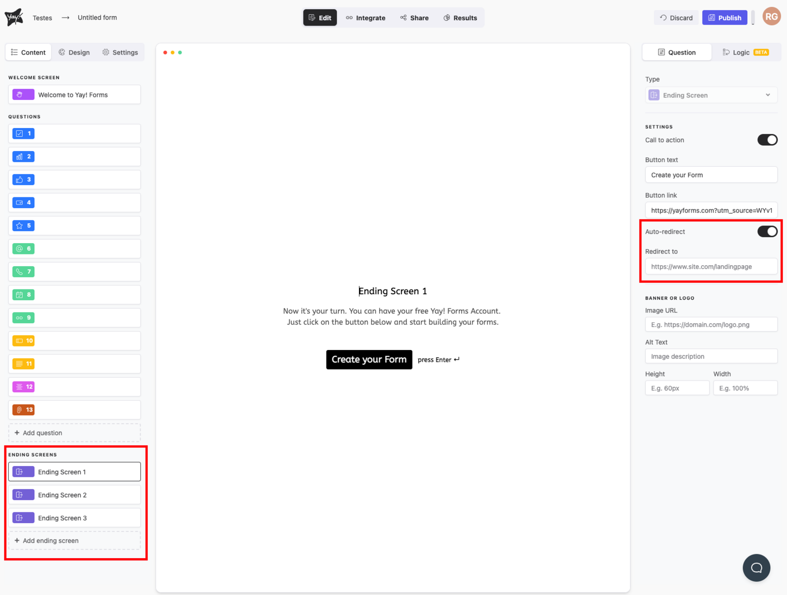 - In the Final Screen settings, enable the "Auto-redirect" option.