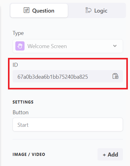 ☝️ You can find a question’s ID on the form edit screen by going to that field’s settings. Just select the desired field and locate the ID in the settings section, as shown in the image below.