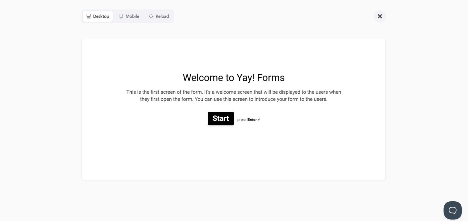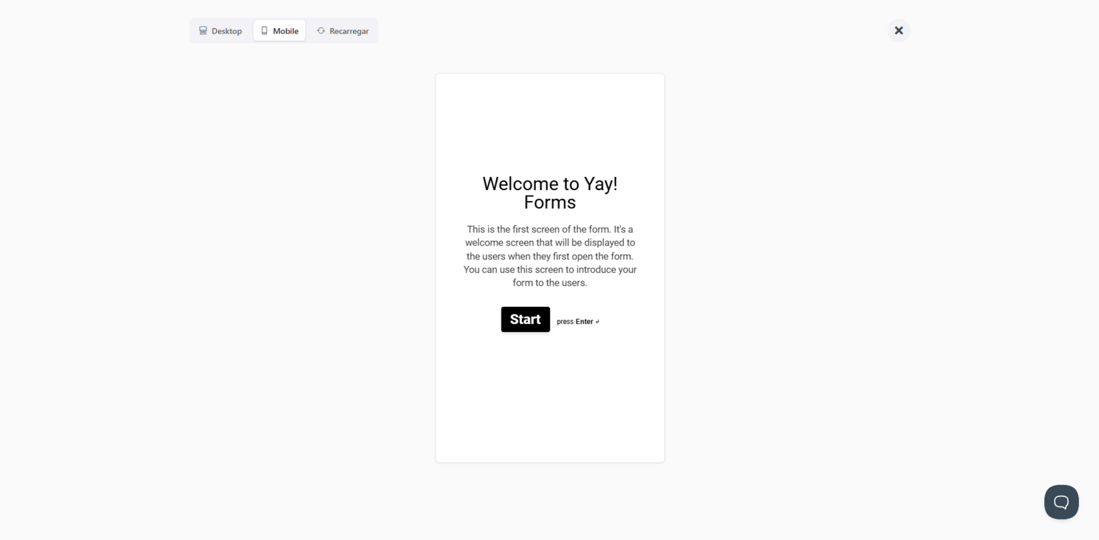 Antes de compartilhar o seu formulário, você pode testá-lo clicando em Preview. Você pode testar tanto no desktop quanto no mobile, como mostrado abaixo.