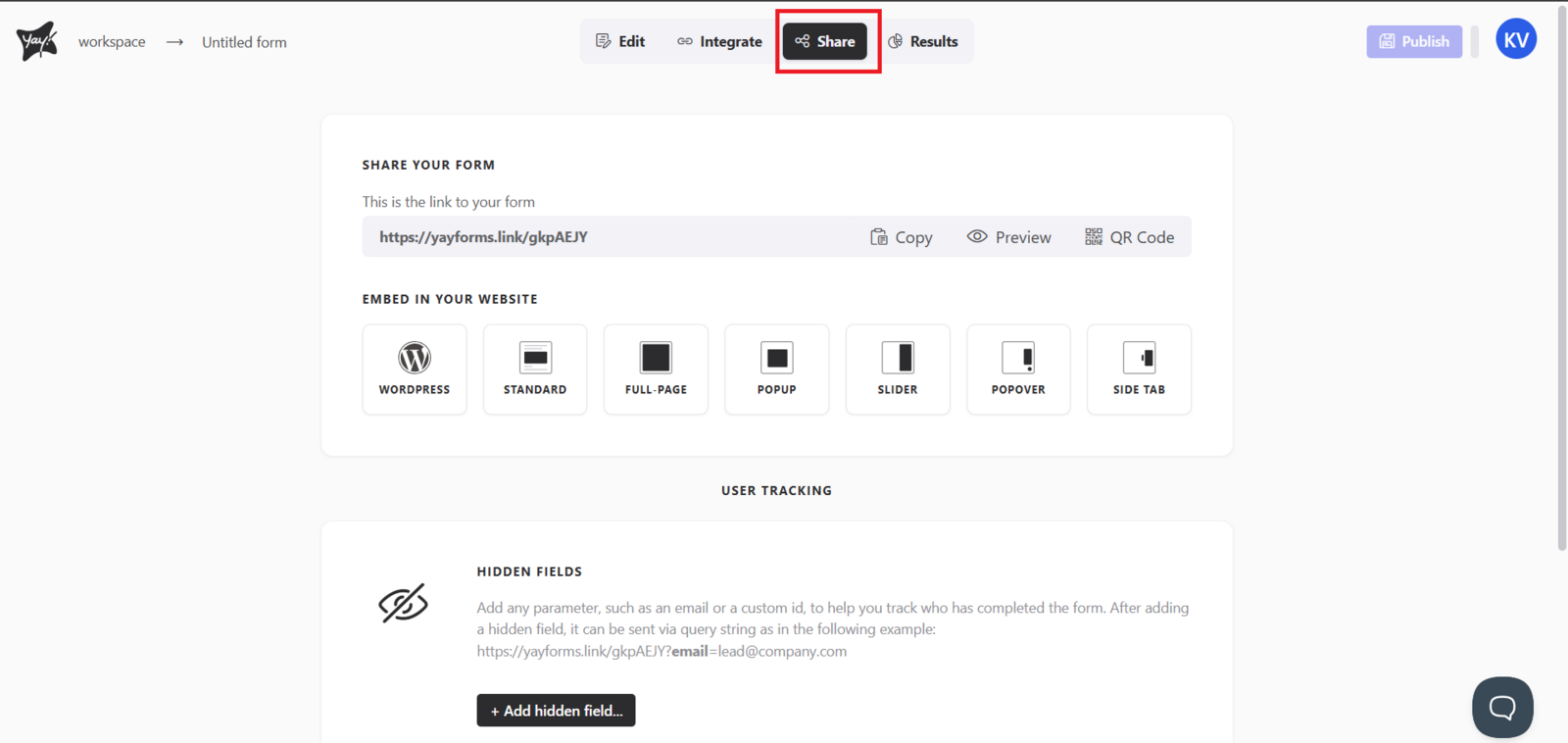 Para compartilhar seu formulário com o público, clique em Compartilhar na parte superior da tela.