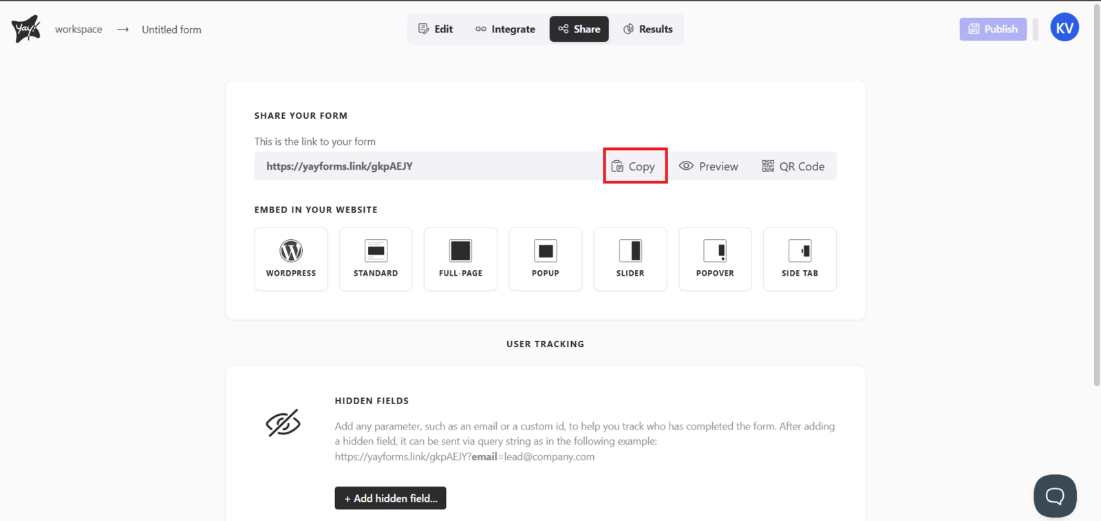 Em seguida, clique em Copiar para copiar o link do seu formulário e compartilhá-lo como quiser.